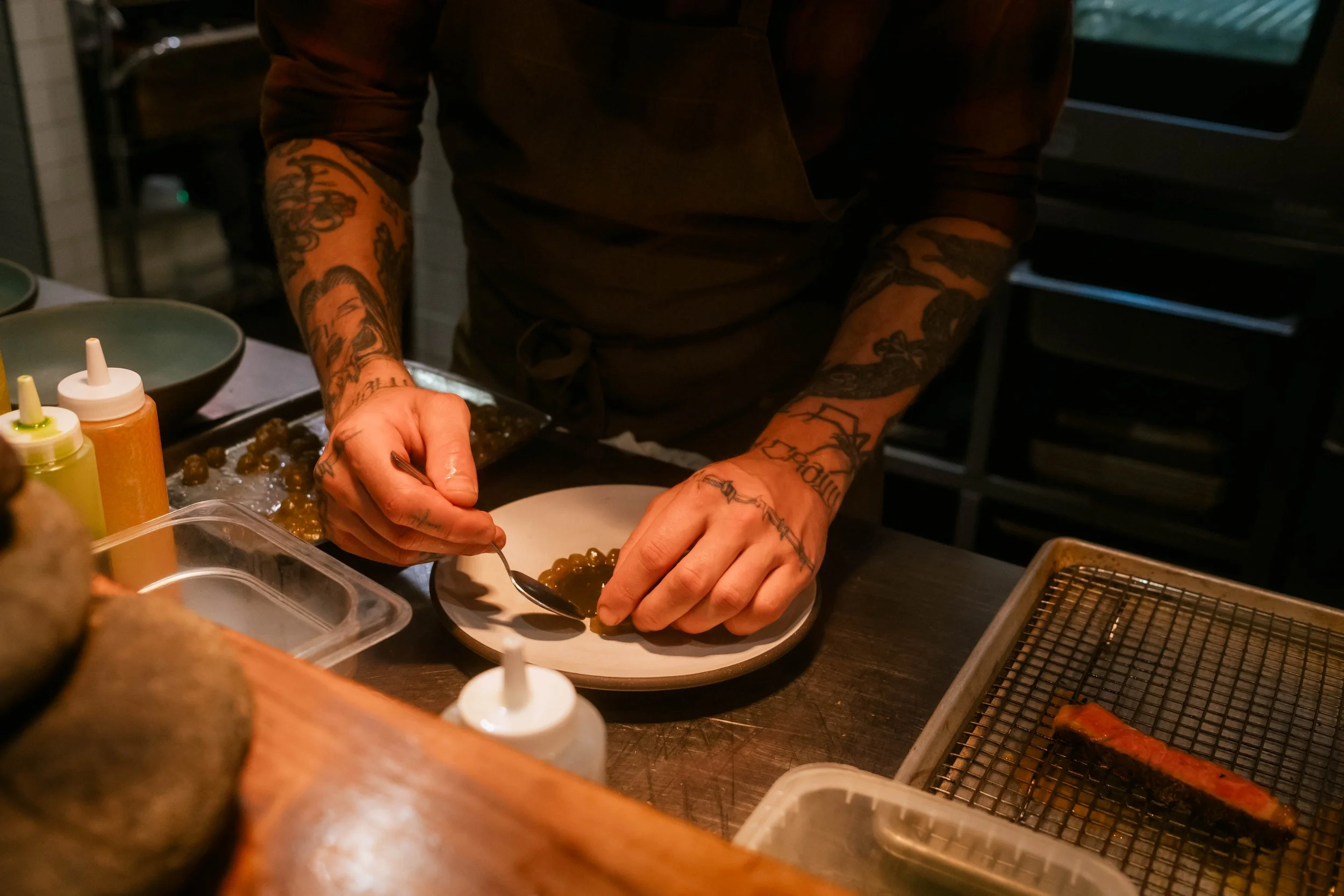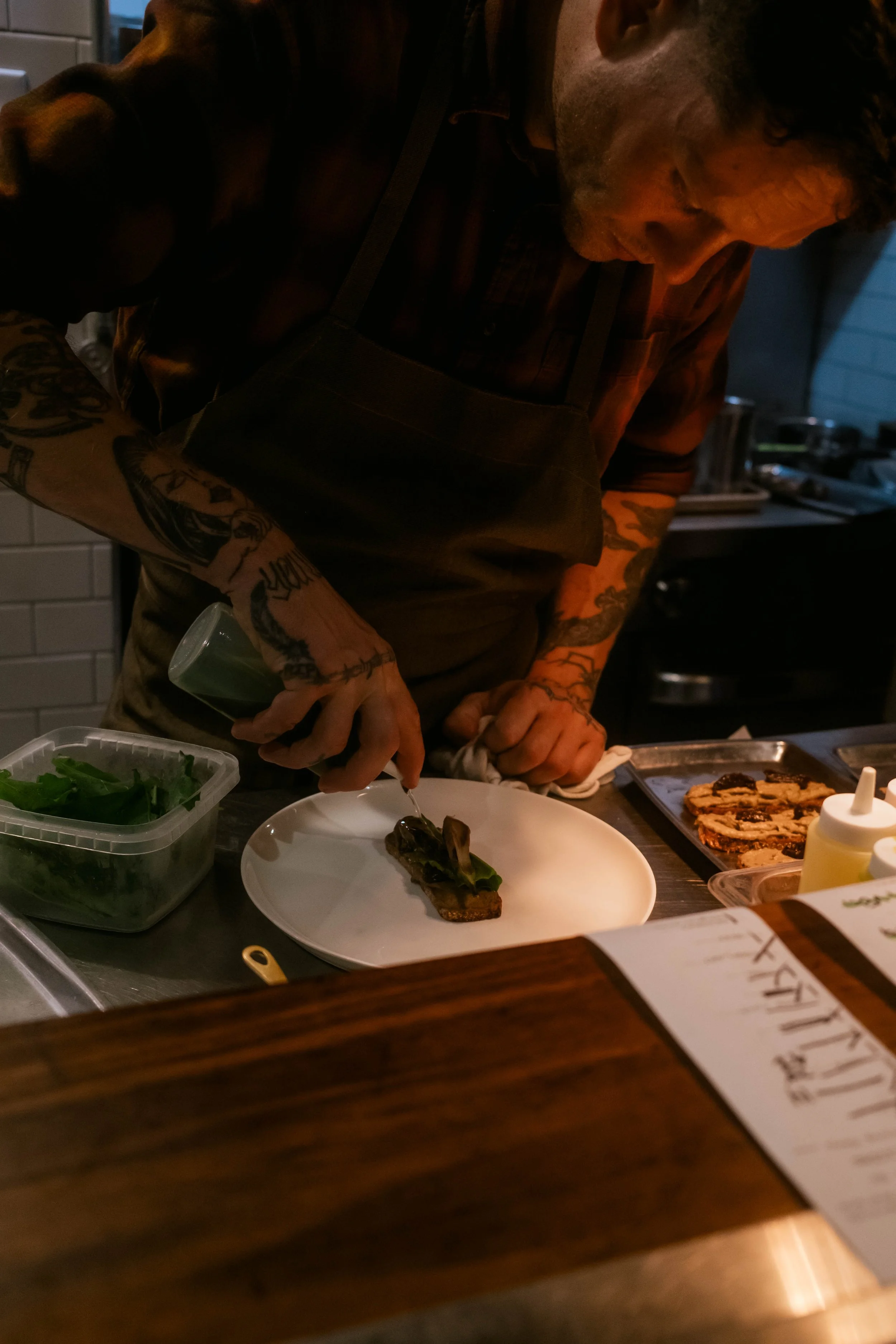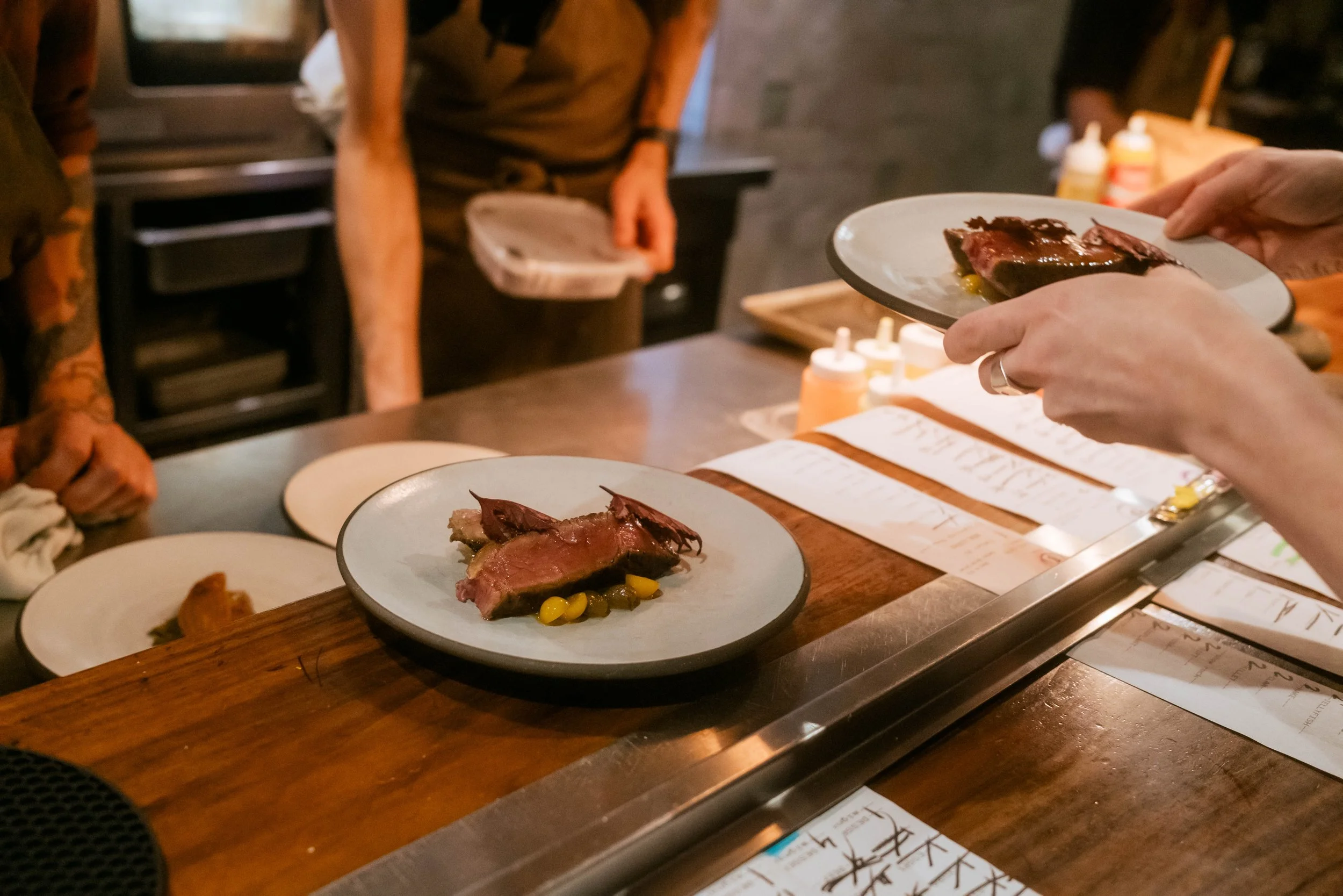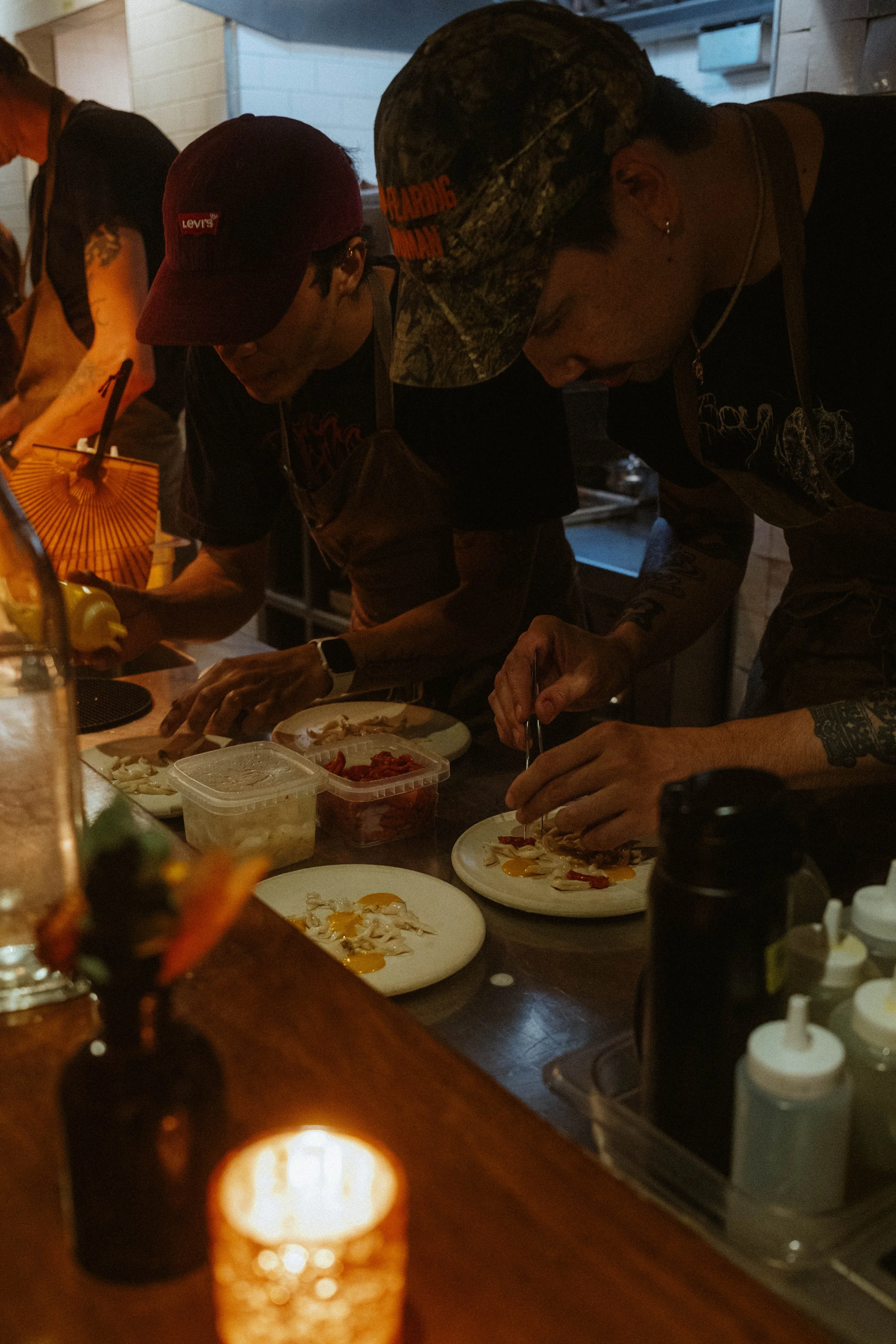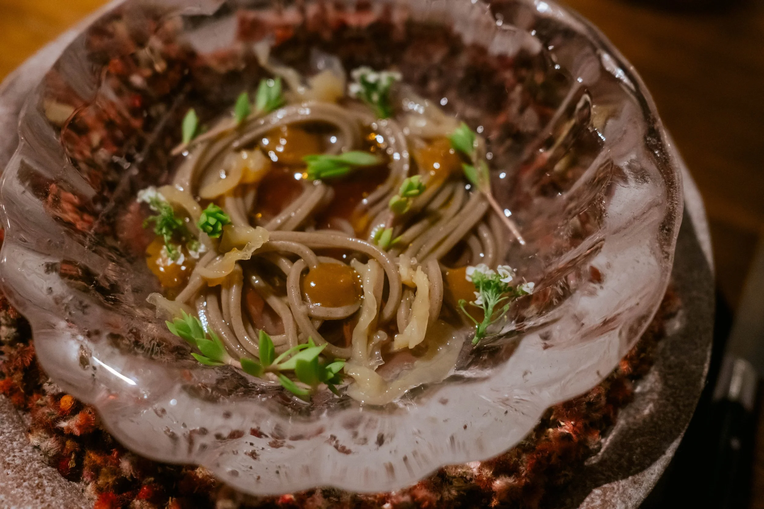 In September 2025, I returned to Fulgurances Laundromat with Scott Murry for a collaborative dinner series that brought together two divergent yet complementary approaches. Scott’s cooking, inventive and precise, carried the imprint of his upbringing in Asia—spices layered with intention, the electric hum of Sichuan peppercorn threaded through his dishes. My own contributions drew on what I had harvested in California and along the East Coast, as well as provisions gathered and preserved over years of travel, each ingredient carrying its own history. Together, the menus formed a conversation between memory and movement: landscapes distilled into flavor, familiar comforts set against the wild and the far-flung, each course a point of connection between our two paths.