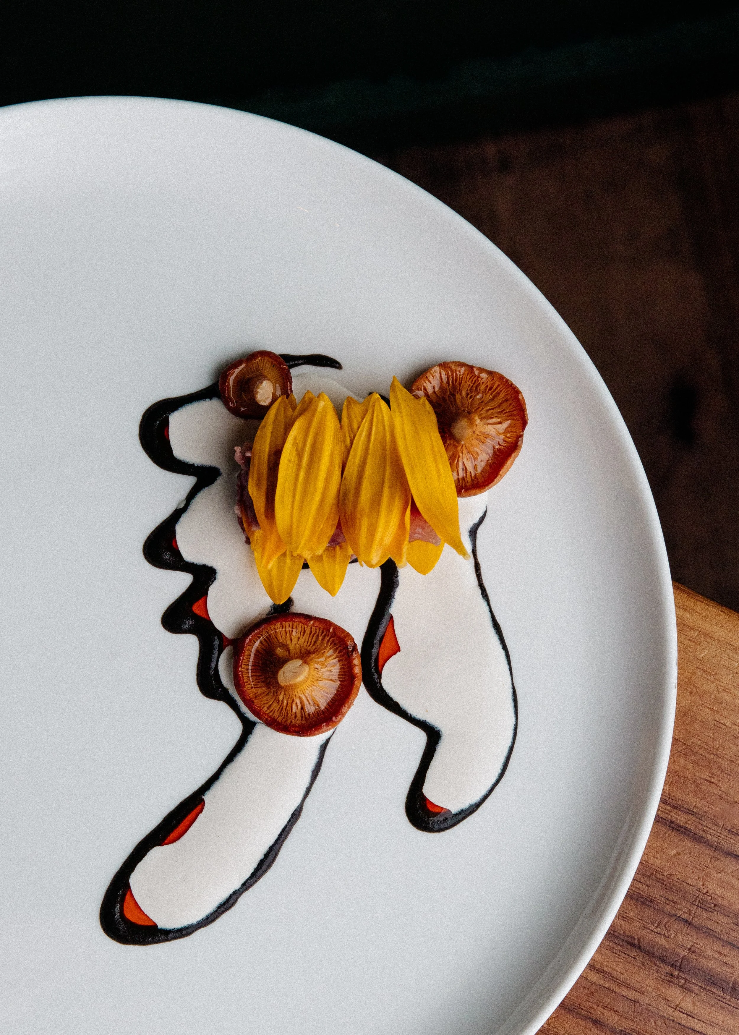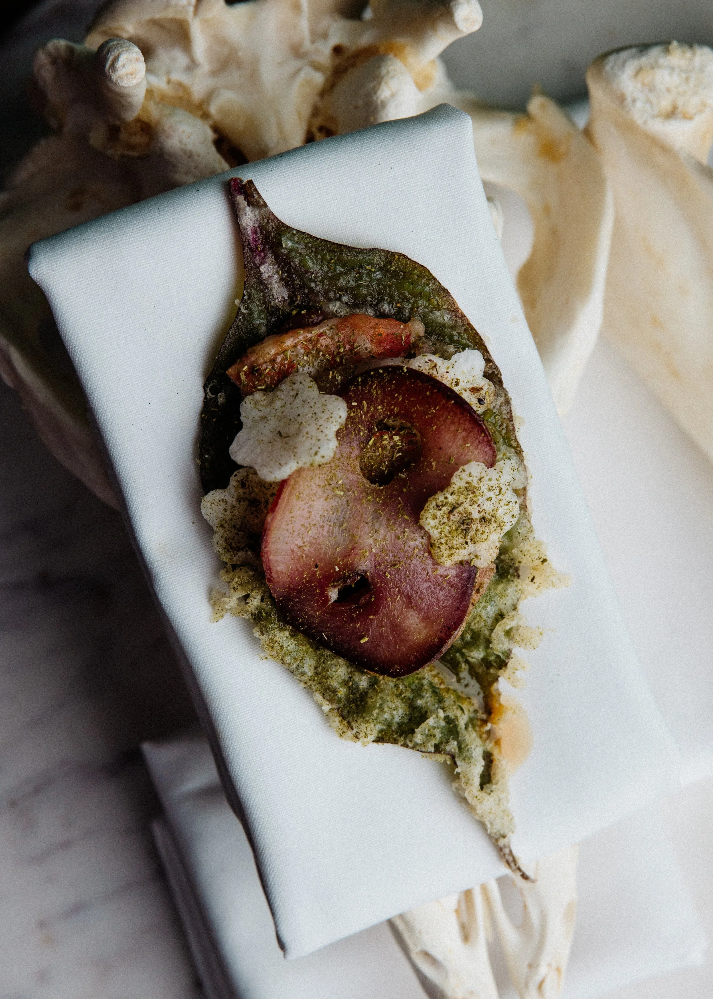 For three months, during the summer of 2024, as chef in residence at Fulgurances Laundromat, I turned my attention to the wild flora of the east coast in its high season. Meadows and thickets gave up their offerings—milkweed in tender shoots, goldenrod in bloom, berries darkening under long hours of light. Each ingredient was presented with as little interference as possible, its character carried intact to the plate. The meals became a record of the landscape’s pulse, the shifting edge of summer rendered in flavors that were both fleeting and exact. What emerged was a menu drawn from plants in their moment of fullest expression.